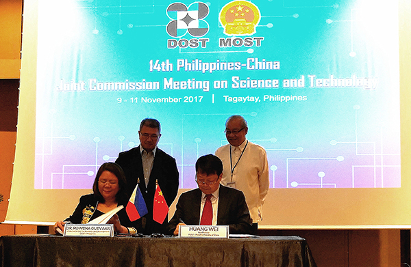 2017年11月10日,中菲政府间科技合作联委会第14次会议在菲律宾成功召开。会议由中国科技部副部长黄卫和菲律宾科技部副部长罗薇娜·格瓦拉共同主持。本次会议是两国恢复政府间科技创新合作的重要里程碑。