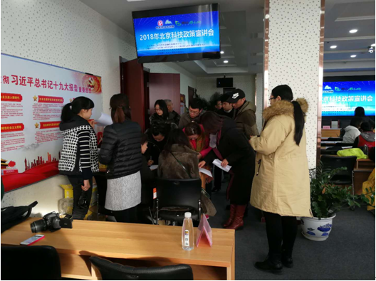 2018年1月18日,由北京科技金融发展服务中心主办,中科研(北京)科技发展中心、中科研科学技术研究院政策研究中心、德山生物医药孵化器承办的“2018年北京科技政策宣讲暨科技项目申报案例分析”巡讲活动在北京市德山生物医药孵化器多功能厅召开。