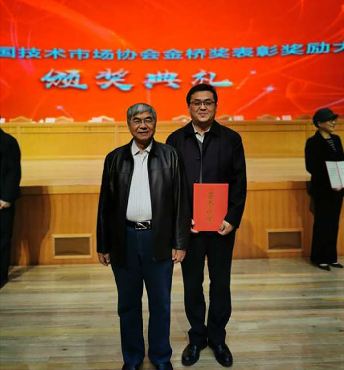2020年10月22日,第十届中国技术市场协会金桥奖表彰奖励大会在山东淄博如期举办,中科研(北京)科技发展中心主任荣获第十届金桥奖个人一等奖并做为获奖代表发言,金桥奖是国家科委于1991年设立全国技术市场金桥奖(相当于国家科技进步二等奖)。